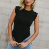 Crew Neckline  Stretch Ribbed Material Raw Hem Seam Detail on Back Cap Sleeves 65% Cotton, 30% Polyester, 5% Spandex Machine Wash Cold, Tumble Dry Low  Three words: Washed. Black. Tanks. We can’t seem to get enough of the Huxley Tank in Black. This tank is perfect for any summer occasion. Style this fitted top with a pair of solid flowy pants and some sandals. Model Info  Height: 5’8″  Wearing Size: X-Small