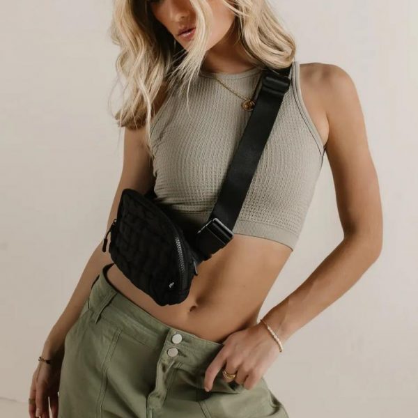 Sleeveless Cropped Fit Stretch Waffle Knit Material 92% Nylon, 8% Spandex Hand Wash Cold, Lay Flat to Dry Model Info Height: 5’7″ Wearing Size: S/M