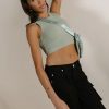 Sleeveless Cropped Fit Stretch Waffle Knit Material 92% Nylon, 8% Spandex Hand Wash Cold, Lay Flat to Dry Model Info Height: 5’9″ Wearing Size: S/M