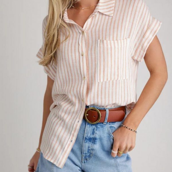Be the first to review “TOPS | Bohme Womens Marie Striped Button Up in Orange” Cancel reply