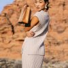 V Neckline Stretch Ribbed Knit Material Side Slits 60% Cotton, 40% Viscose, Hand Wash Cold, Lay Flat to Dry MATCHING PIECES SOLD SEPARATELY Model Info Height: 5’8″ Wearing Size: S/M