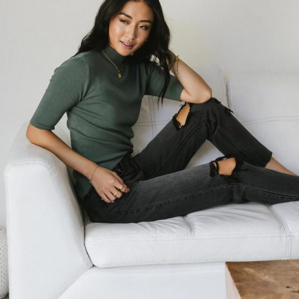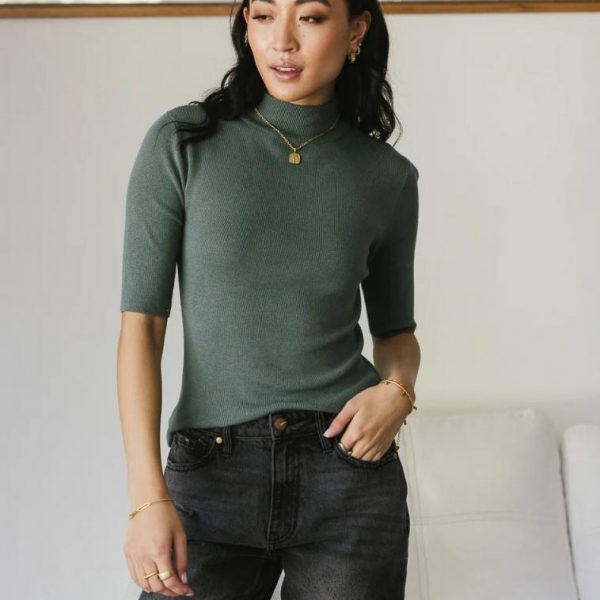 Mock Neck Sweater Top in Green…