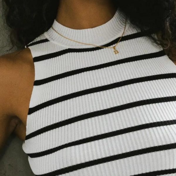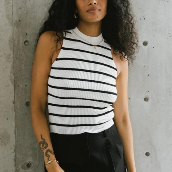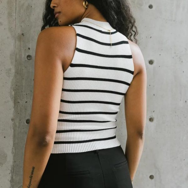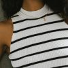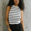 Mock Neck Sleeveless Stretch Ribbed Material 78% Viscose, 22% Polyester Hand Wash Cold, Dry Flat Model Info Height: 5’8” Wearing Size: X- Small