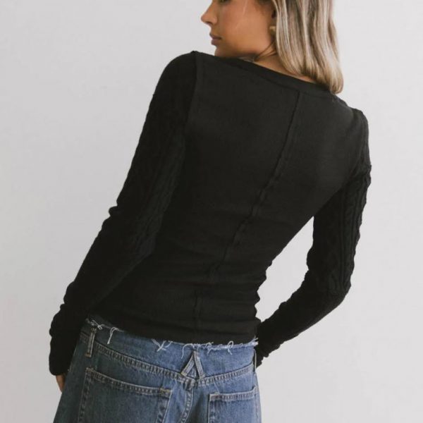 TOPS | Bohme Womens Naomi Cable Knit Sleeve Top in Black