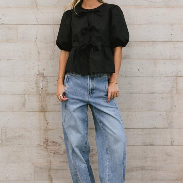 Be the first to review “TOPS | Bohme Womens Natalia Peplum Tie Blouse in Black” Cancel reply