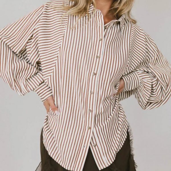 TOPS | Bohme Womens Niri Striped Button Up in Brown