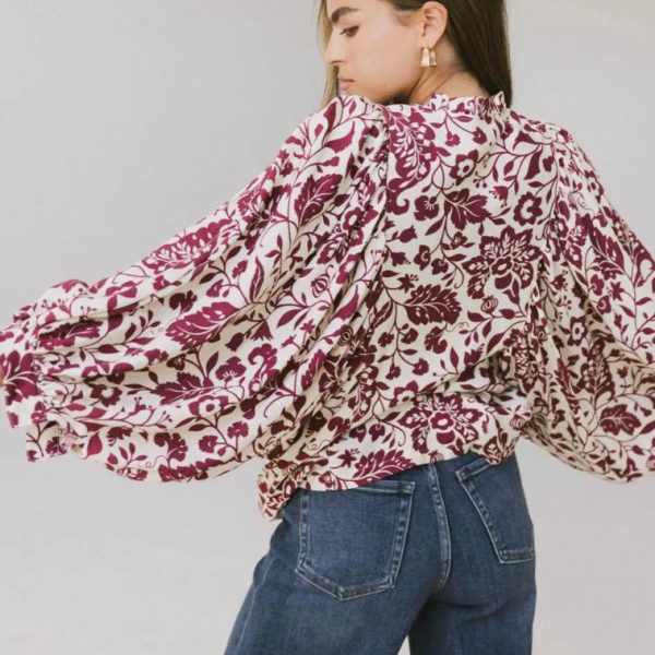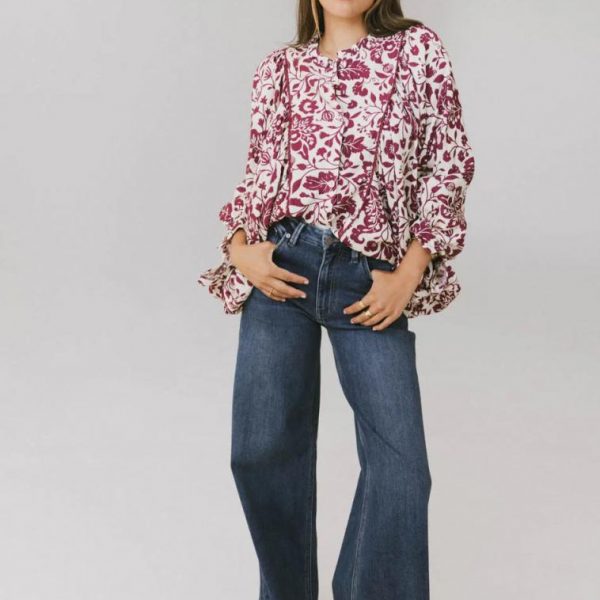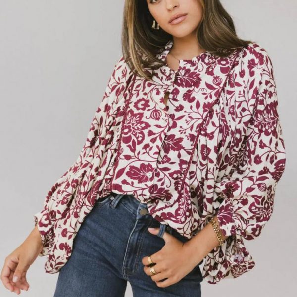 Ruffle Collared Neckline Long Dolman Sleeves Seven Button Closure Floral Pattern Ric Rac Trim Detail Non Stretch Material 55% Cotton, 25% Polyester, 20% Rayon Hand Wash Cold, Line Dry Model Info Height: 5’5″ Wearing Size: Small