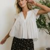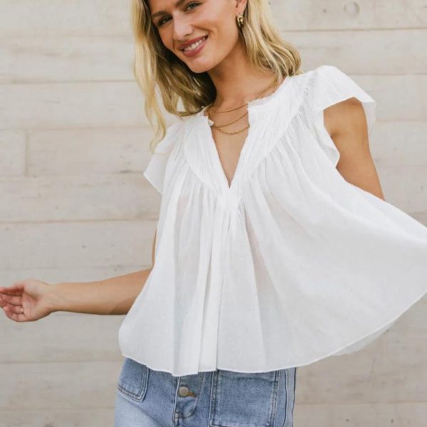 Slit Neck Short Flutter Sleeves Front Pleating Detail Non Stretch Woven Material See Through 100% Cotton Hand Wash Cold, Hang Dry Layering Piece Sold Separately  Model Info Height: 5’7″ Wearing Size: Small