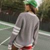 This is a Pre-Order Item, estimated ship date is 9/6/2024. For more information on preorders, click here  V Neckline Four Button Closure Contrast Striping on Hem Contrast Striping on Left Sleeves Ribbed Cuffs, Neckline, Hem Stretchy Material 60% Cotton, 40% Acrylic Hand Wash Cold, Hang Dry  Model Info Height: 5’9” Wearing Size: Small