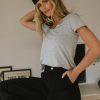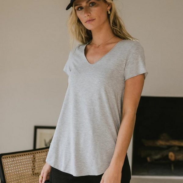 Short Sleeve U-Neck Stretch Knit Material 95% Rayon, 5% Spandex Hand Wash Cold, Hang or Line Dry Model Info Height: 5’8″ Wearing Size: X-Small