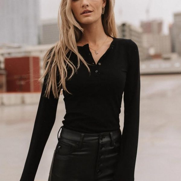 TOPS | Bohme Womens Quincy Henley Top in Black – FINAL SALE
