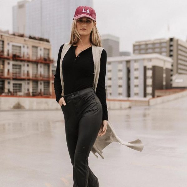 Round Neckline Long Sleeves Four Front Buttons Stretch Knit Material  92% Rayon, 8% Spandex  Hand Wash Cold, Lay Flat to Dry  Model Info  Height: 5’7″  Wearing Size: Small