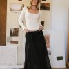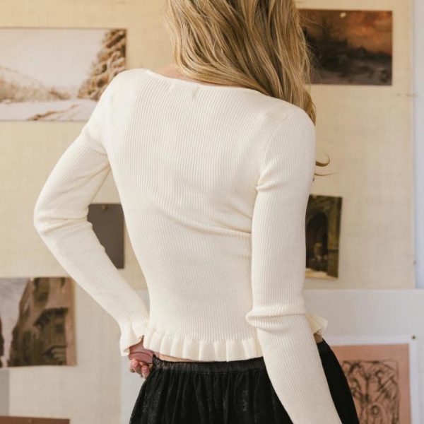 Scoop Neckline Long Sleeves with Lettuce Cuffs Lettuce Hem Detail Stretch Ribbed Knit Material 70% Viscose, 30% Polyester Hand Wash Cold, Lay Flat to Dry Model Info Height: 5’7″ Wearing Size: Small