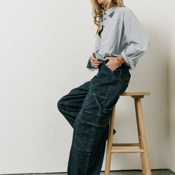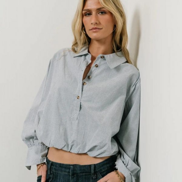 Collared Neckline Long Sleeves with Button Cuffs Five Button Closure Bubble Hem Cropped Fit 100% Cotton Hand Wash Cold, Line Dry Model Info Height: 5’7″ Wearing Size: Small