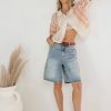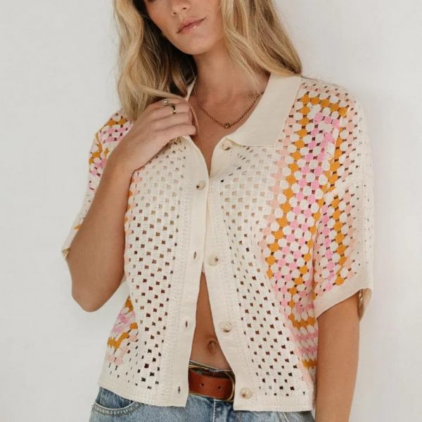 Round Collared Neckline Five Front Functioning Buttons Crochet Knit Body Cropped Fit 60% Cotton 40% Acrylic Hand Wash Cold, Line Dry  When it comes to the Reese Sweater, we’re obsessed. This top is the ultimate layering piece and can be styled one million different ways. To get started, try this crochet sweater over a bandeau top with some bermudas and low profile sneakers. Model Info  Height: 5’8″  Wearing Size: Small