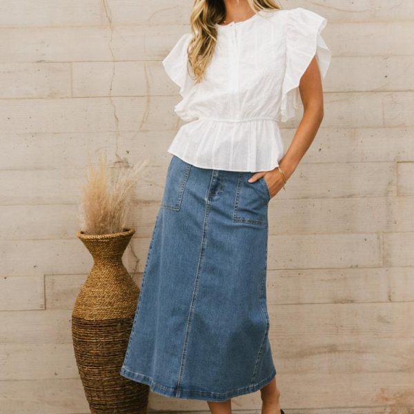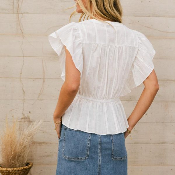 Round Neckline Five Button Front Elastic Waistband Short Flutter Sleeves Underarm Gusset Lace Slightly See Through Non Stretch Material 100% Cotton Hand Wash Cold, Hang Dry  Model Info Height: 5’7” Wearing Size: Small