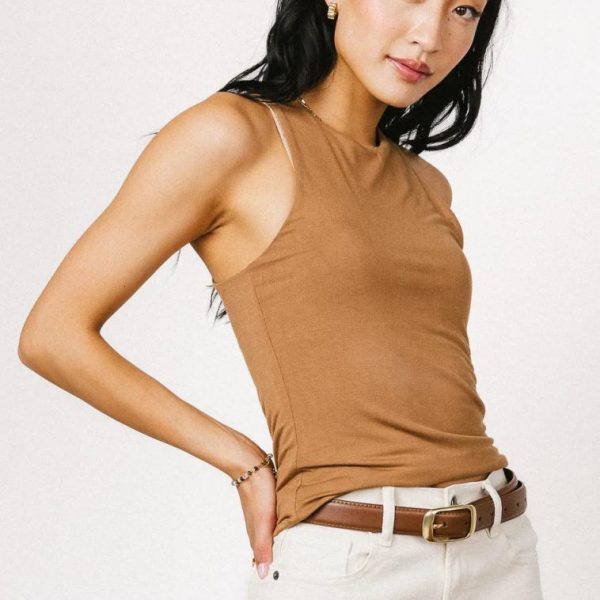 TOPS | Bohme Womens Sleek Jersey Solid Tank in Camel
