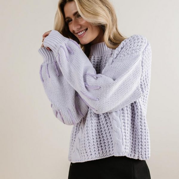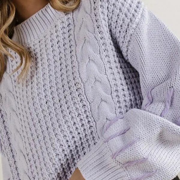 Thick Round Neckline Long Sleeves Contrast Stitching on Sleeves 3D Knit Braid Effect Stretch Knit Material 60% Cotton, 40% Acrylic Machine Wash Cold, Line Dry  Model Info  Height: 5’7″  Wearing Size: X-Small