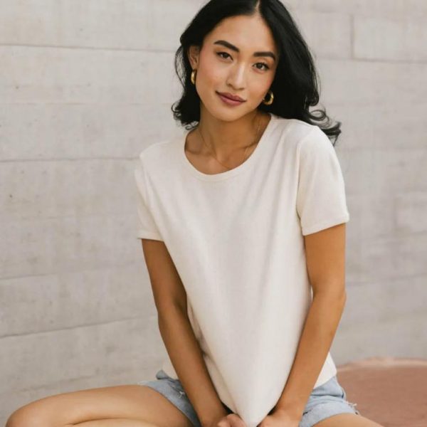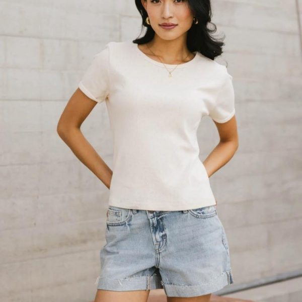 Ribbed Neckline Short Sleeve Ribbed Sleeve Cuff Knit Patterned Holes  Slightly See Through Stretch Material 100% Cotton Hand Wash Cold, Hang Dry  Model Info Height: 5’7″ Wearing Size: Small