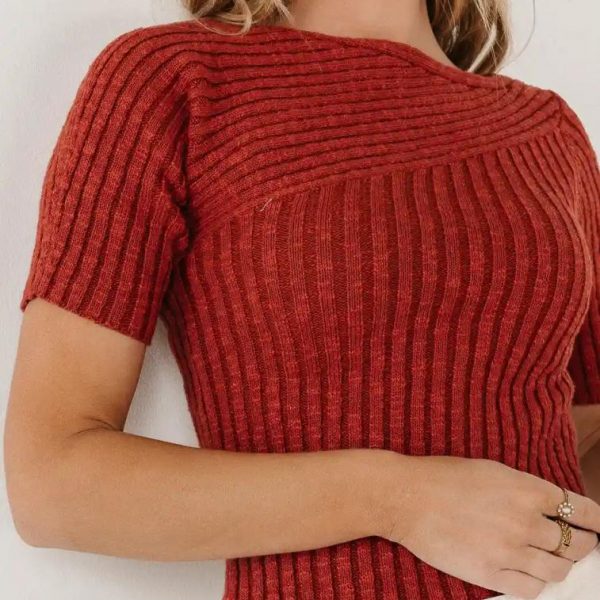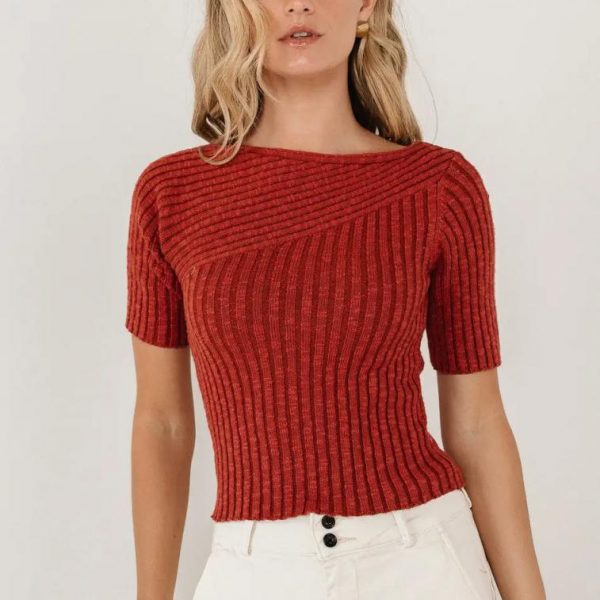 Boat Neckline Ribbed, Asymmetrical Pattern Stretch Knit Material 62% Cotton, 29% Acrylic, 9% Nylon Hand Wash Cold, Line Dry Craving more color? We recommend the Toni Sweater Top in Brick. Style with some bermudas and sneakers and you’ll look great at school, at work, or at the mall! Model Info Height: 5’7″ Wearing Size: X-Small Measurement: Bust 28″, Length 19″