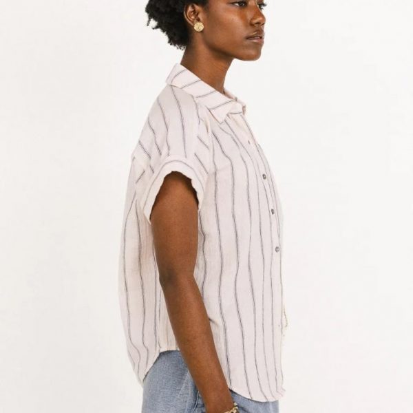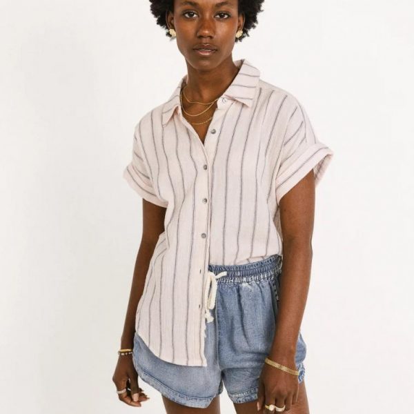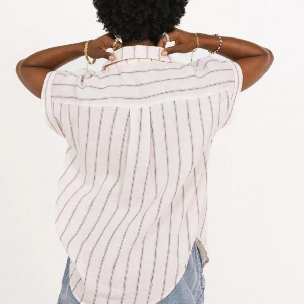 Collared Neckline Seven Functional Front Buttons Short Rolled Sleeves Scoop Hemline Boxy Fit Slightly See Through Non Stretch Material 100% Rayon Hand Wash Cold, Flat Dry The Topanga Striped Button Up in Pink is about to be you’re next favorite top. This collared shirt is so versatile and looks great layered or just on its own. We recommend pairing it with some straight leg jeans and strappy sandals to keep comfy this summer. Model Info Height: 5’5″ Wearing size: Small