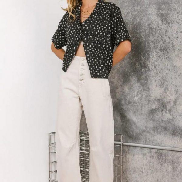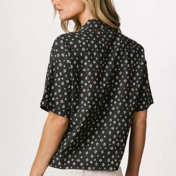 Collared Neckline Four Button Closure Two Chest Pockets Short Sleeves Non-Stretch Material Slightly See Through 55% Linen, 45% Rayon Hand Wash Cold, Flat Dry Bralette sold separately Black floral tops can be such staples, and the Xiomara Floral Button Up in Black is no different. This top is perfect for summer shopping trips and mall strolls. Pair with a flowy skirt and some sneakers for a casual look. Model Info Height: 5’7″ Wearing Size: Small