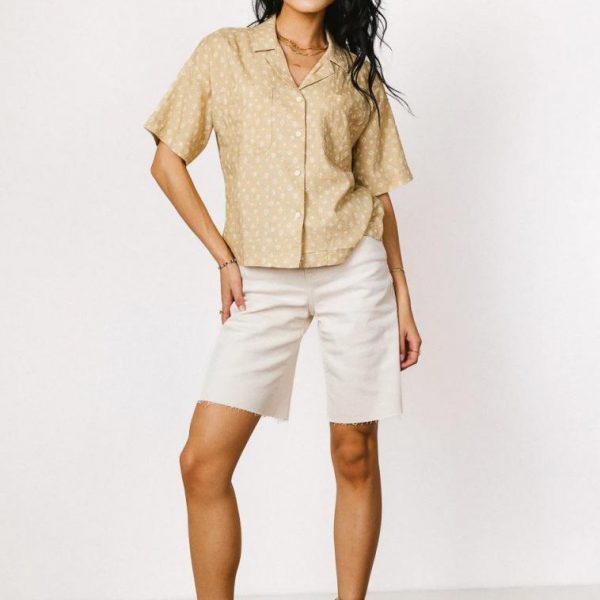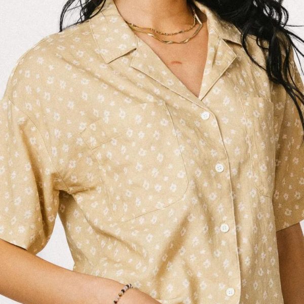 Collared Neckline Four Button Closure Two Chest Pockets Short Sleeves Non-Stretch Material Slightly See Through 55% Linen, 45% Rayon Hand Wash Cold, Flat Dry The Xiomara Floral Button Up in Yellow is a warm-tone lover’s new best friend. We can’t get enough of this bright color palette. Pair it with a denim mini skirt and a layering piece to feel as good as a sunny day. Model Info Height: 5’8″ Wearing Size: Small
