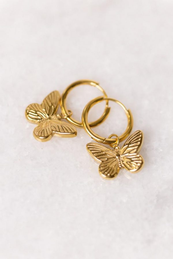 Sale! JEWELRY | Bohme Womens Raya Butterfly Hoop Earrings – Tarnish Free $ 25.00 $ 12.00 Select options