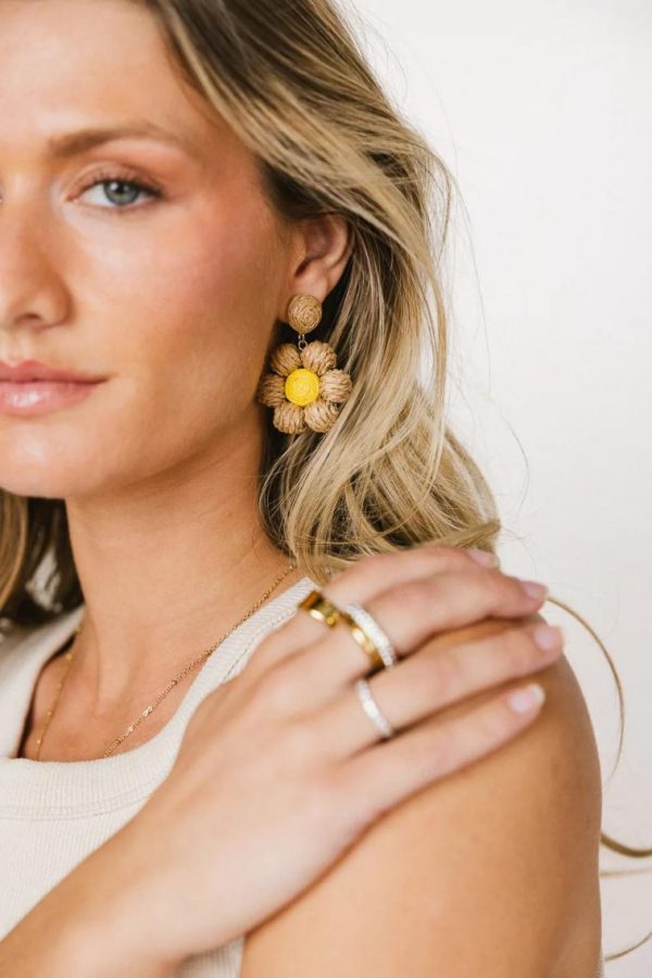 JEWELRY | Bohme Womens Bobbi Rattan Flower Earrings in Tan