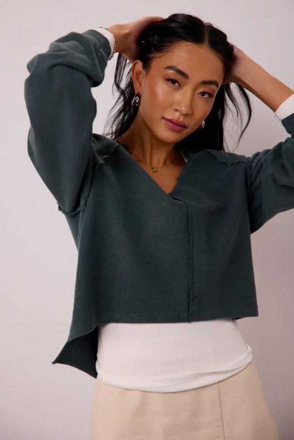 TOPS | Bohme Womens Exposed Seam Sweatshirt in Teal