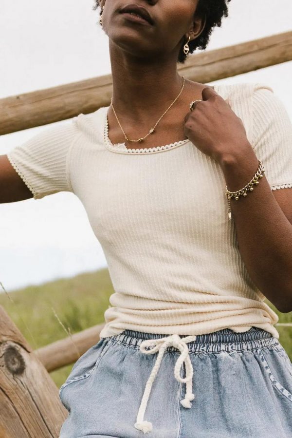 TOPS | Bohme Womens Aybree Ribbed Tee in Cream