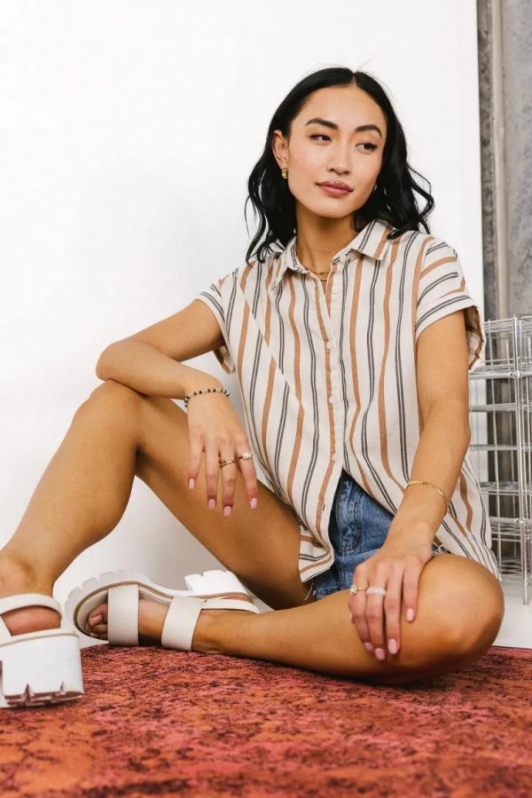 TOPS | Bohme Womens Gabby Striped Button Up in Tan