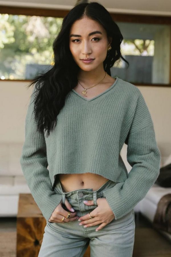 TOPS | Bohme Womens Lyra V-Neck Sweater in Sage